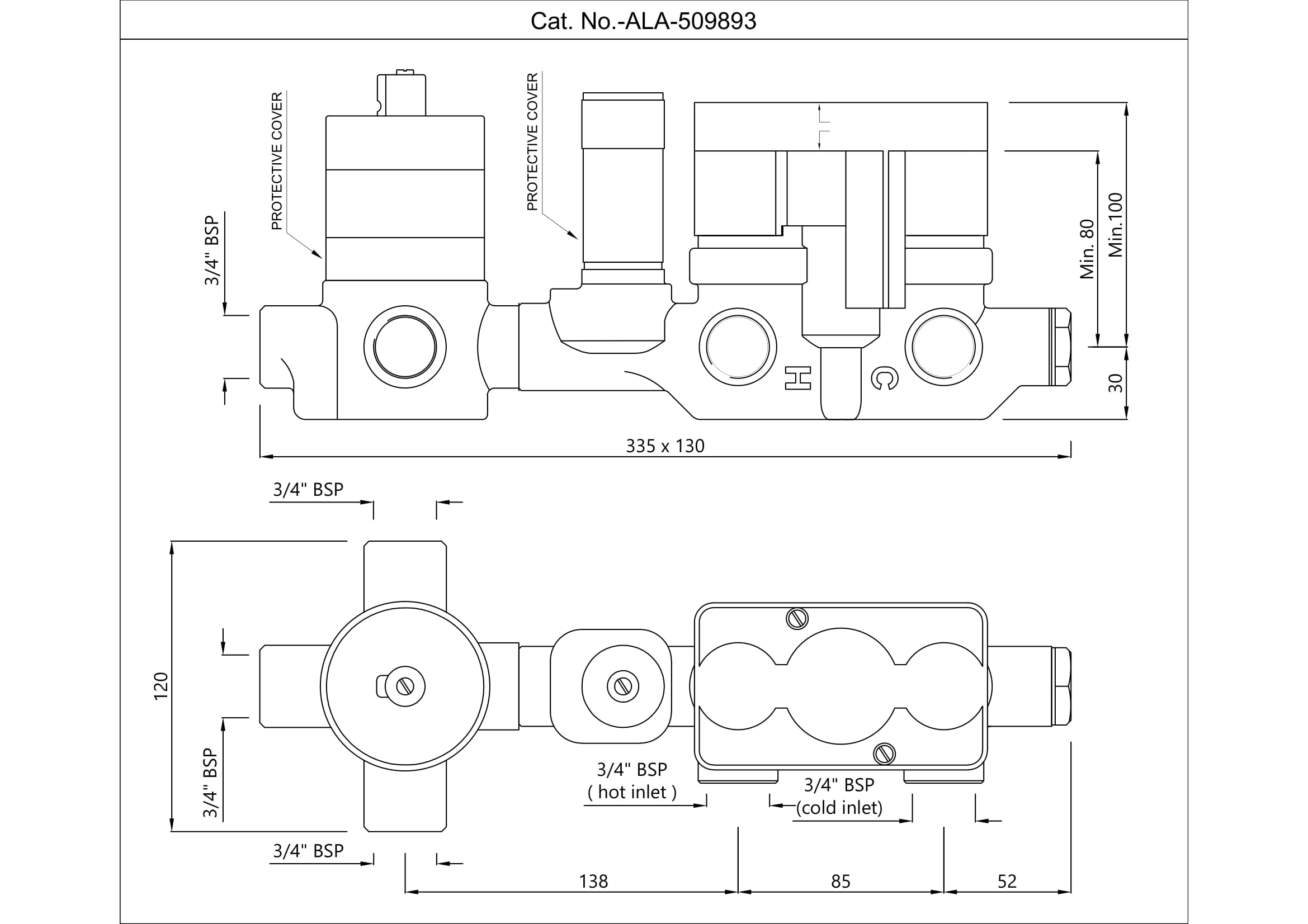 Description: In-wall Body of Thermostatic Shower Mixer with 3-Way Diverter (Without Exposed Parts)