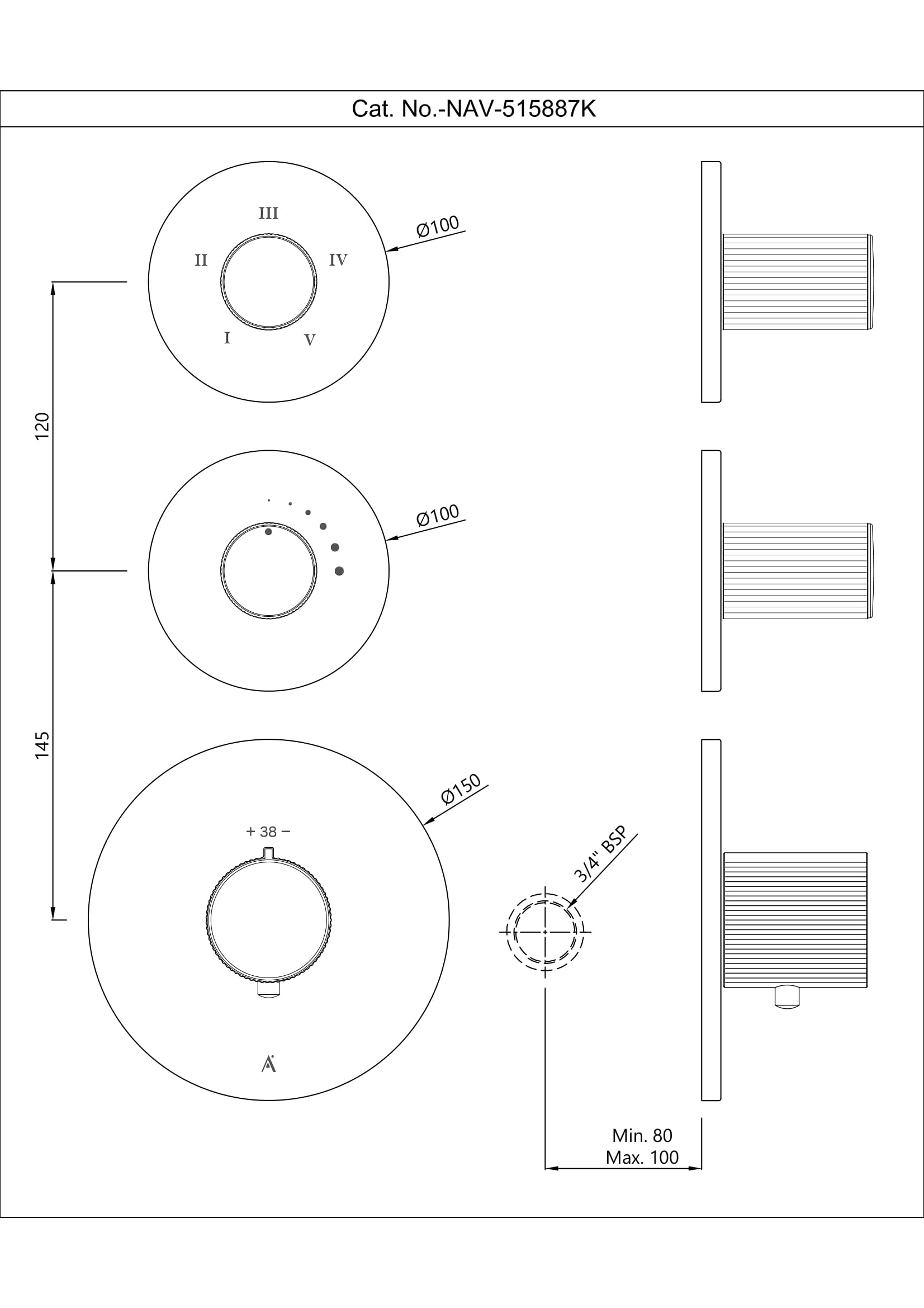 Description: Exposed Part Kit of Thermostatic Shower Mixer with 5-way diverter, Round Flanges (Compatible In-wall Part ALA-509887 is sold separately)