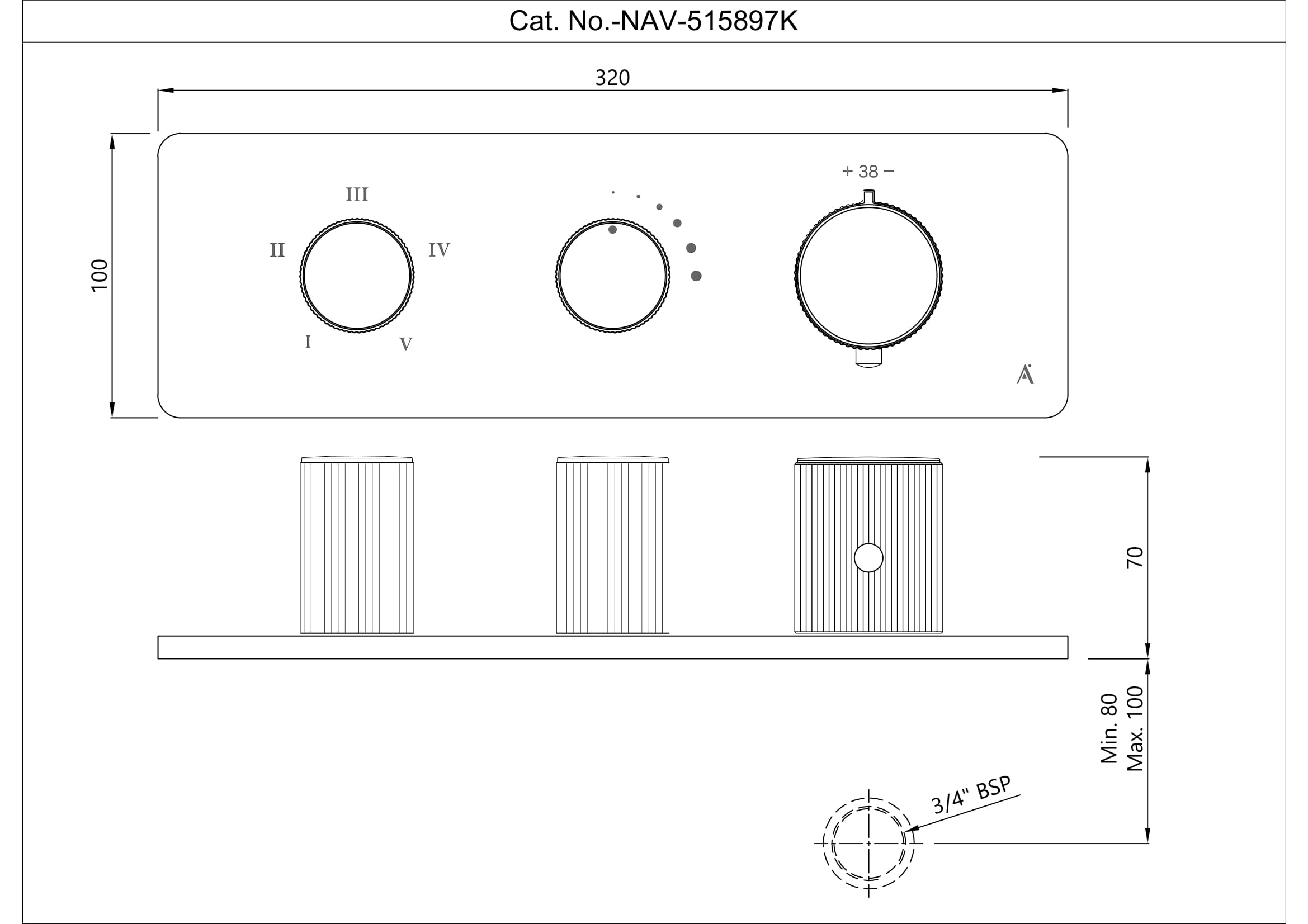 Description: Exposed Part Kit of Thermostatic Shower Mixer with 5-way diverter, Rectangular Flange (Compatible In-wall Part ALA-509897 is sold separately)