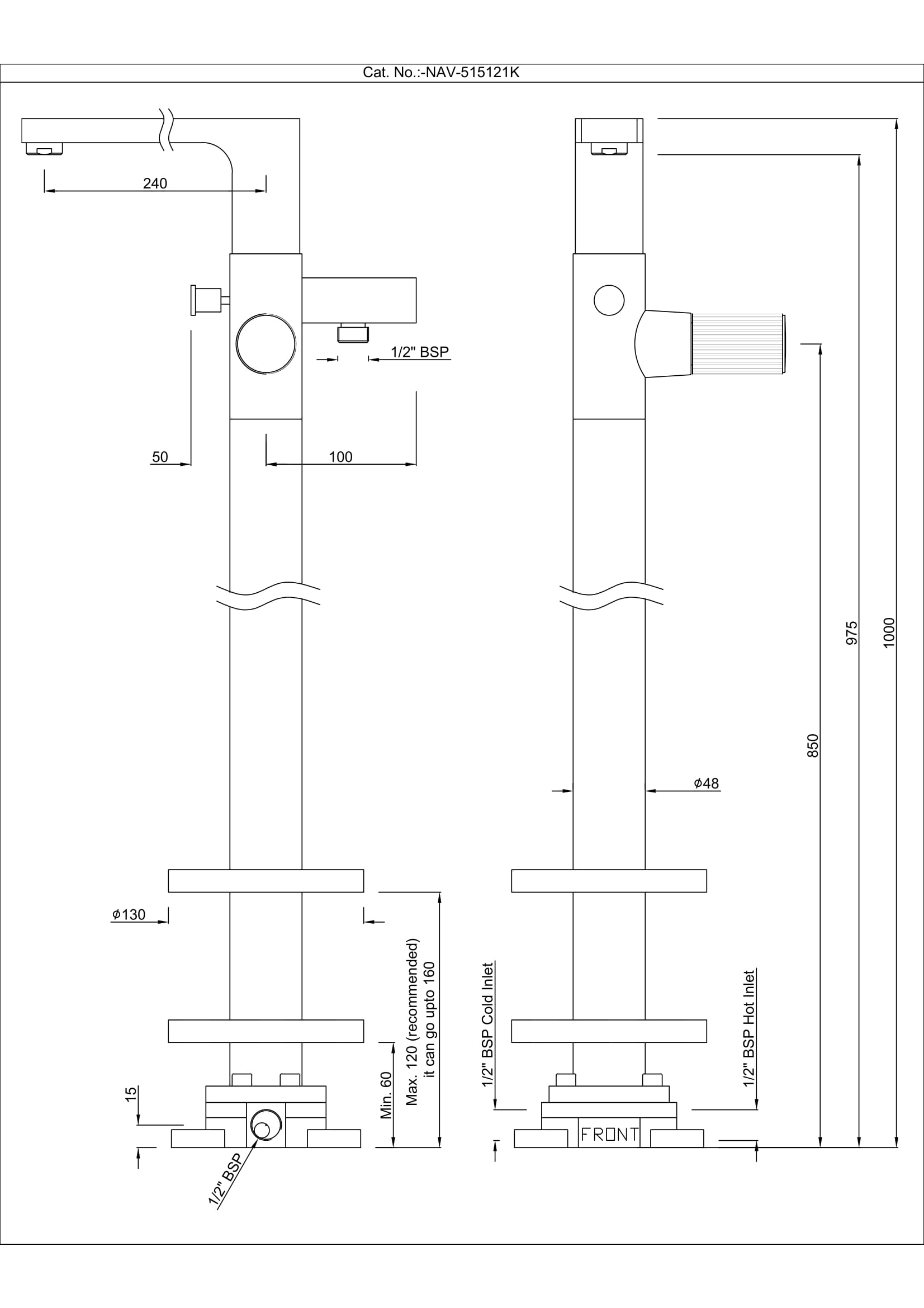 Exposed Parts of Floor Mounted Bath Mixer with Provision for Hand Shower, but without Hand Shower & Shower Hose (Compatible In-Floor part ALA-509121 is sold separately)