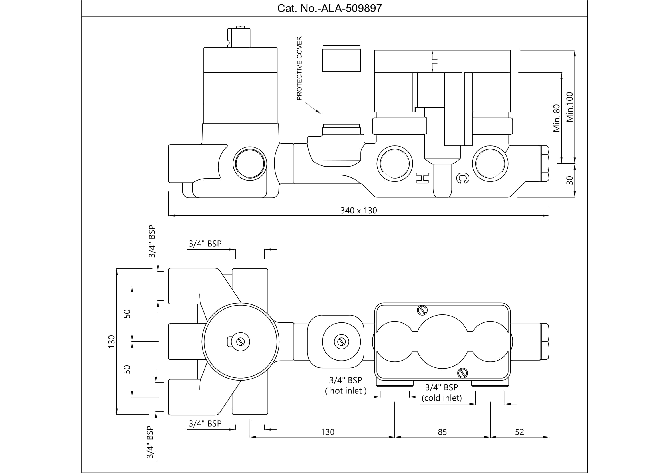 Description: In-wall Body of Thermostatic Shower Mixer with 5-way diverter (Without Exposed Parts)