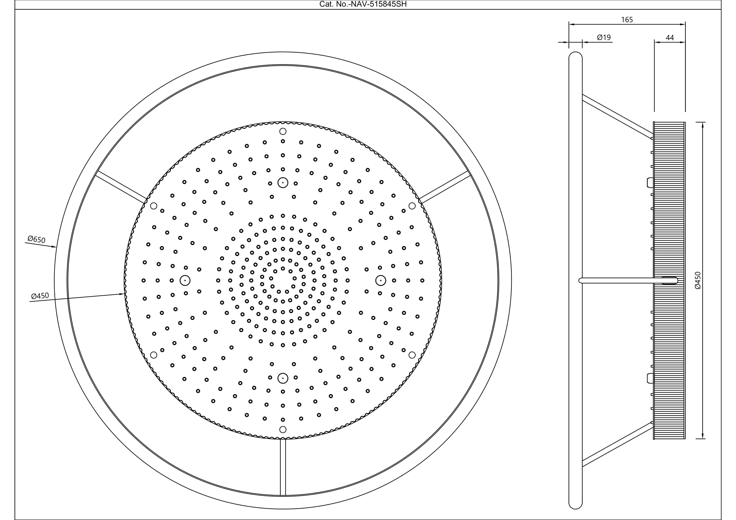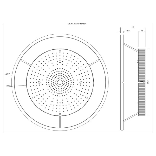 Description: Navia RAINJOY Shower 450mm AISI 304 stainless steel with RGB LED lights & remote control, without installation kit for false ceiling