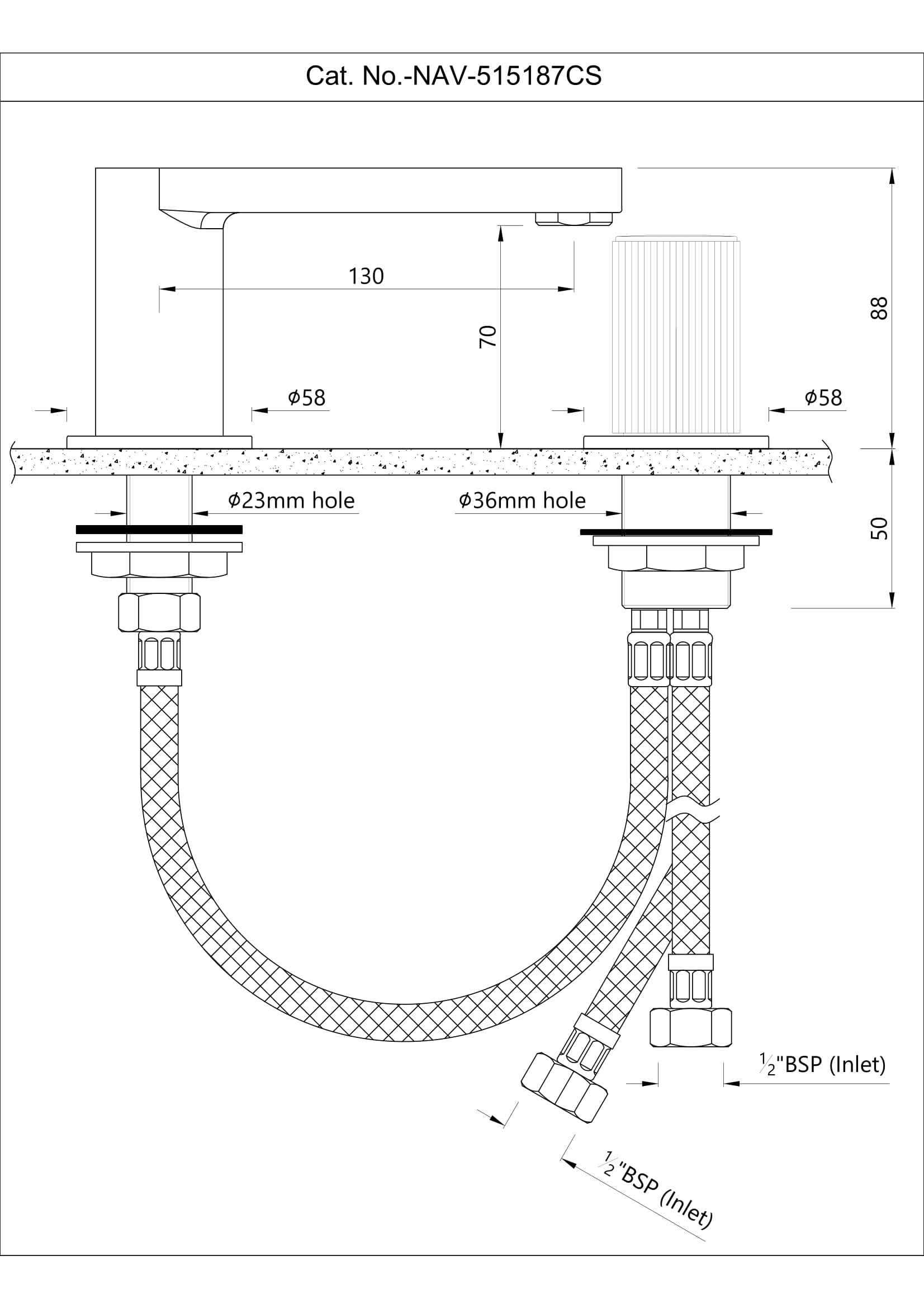 2-Hole Basin Mixer with Casted Spout without Popup Waste