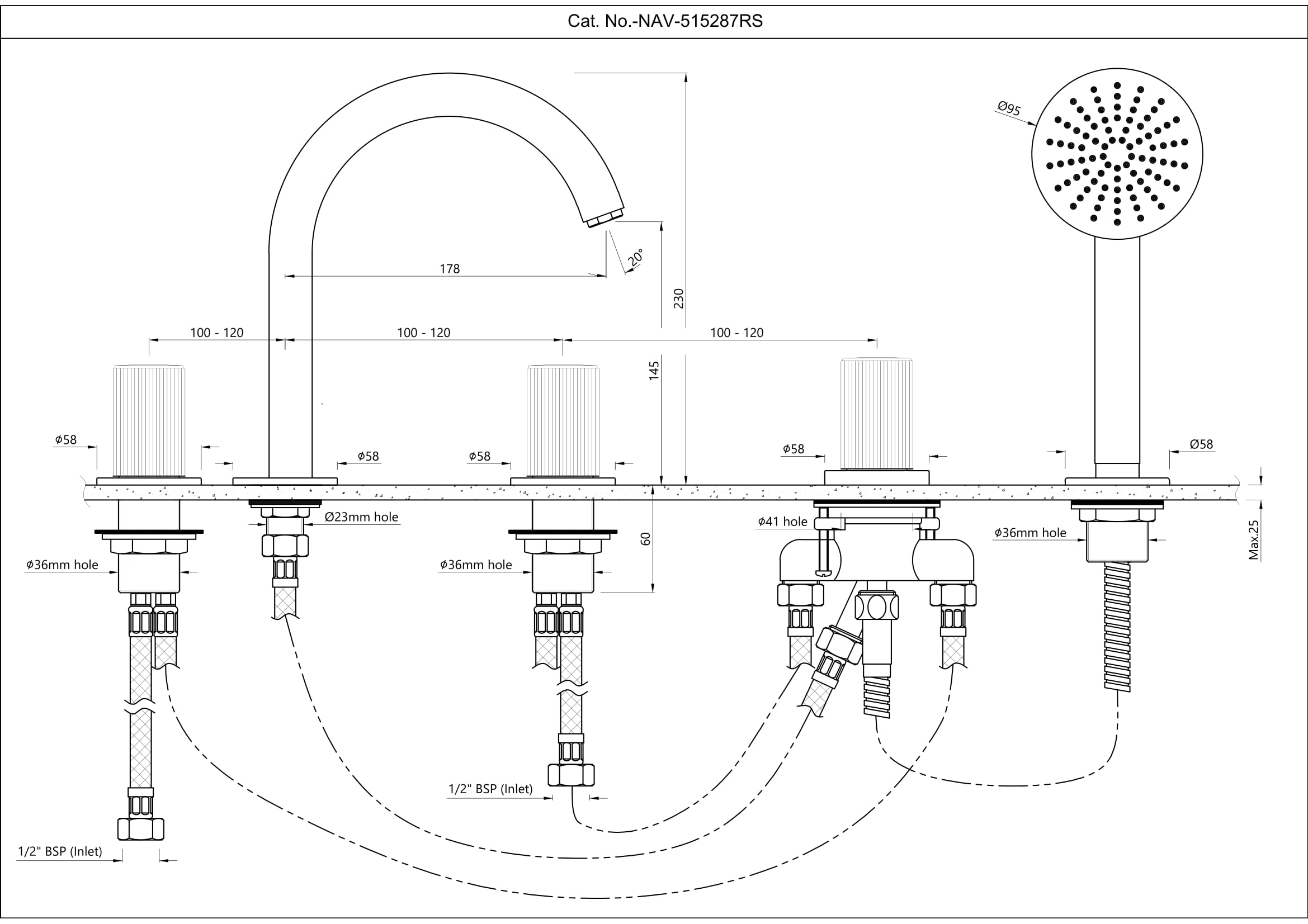 Description: 5-Hole Bath & Shower Mixer with Round Spout, Deck Mounted
