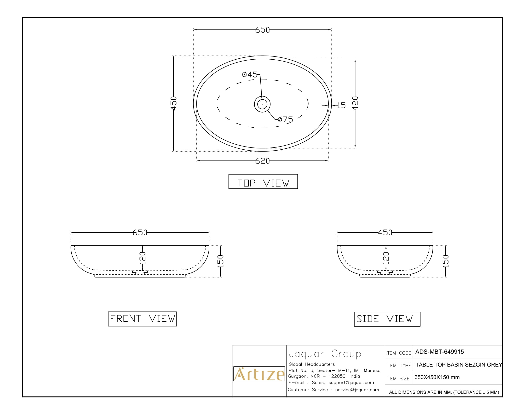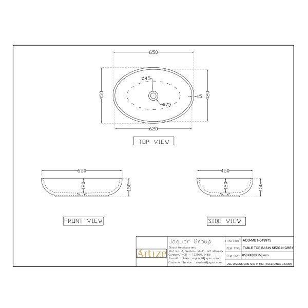 - Jaquar reserves the right at its sole discretion, to change/modify/alter any product specification at any time without notice, where improvement can be effected in design, development and dimensions.